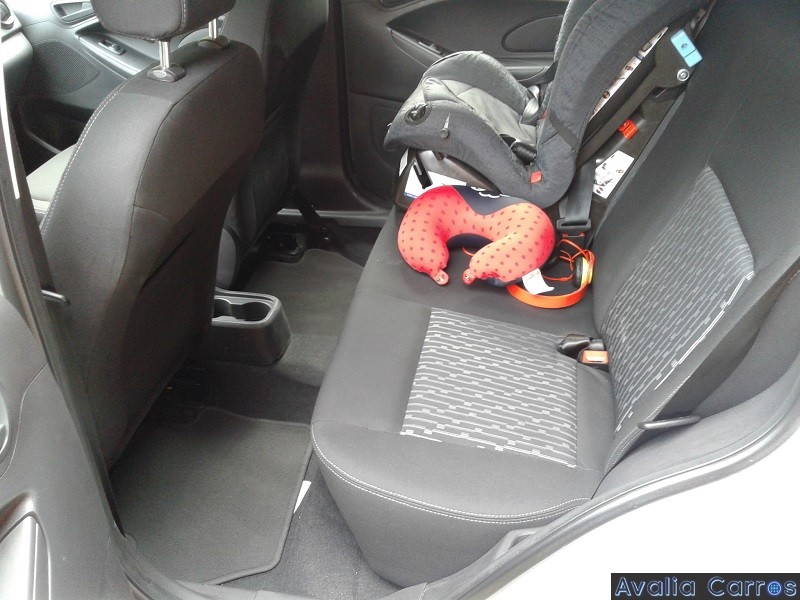 O Ka é um compacto que agrada no quesito espaço interno para ocupantes. Os bancos são bem simples, mas agradáveis, e acomodam bem qualquer pessoa de qualquer estatura. Quatro adultos ficam bem confortáveis, com muito espaço para as pernas, e sem ficar raspando cabeça no teto.